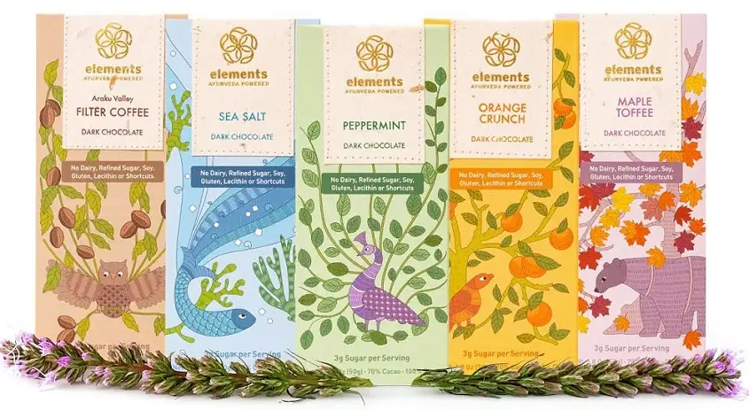 Elements Truffles and their range of Ayurveda-inspired chocolate bars